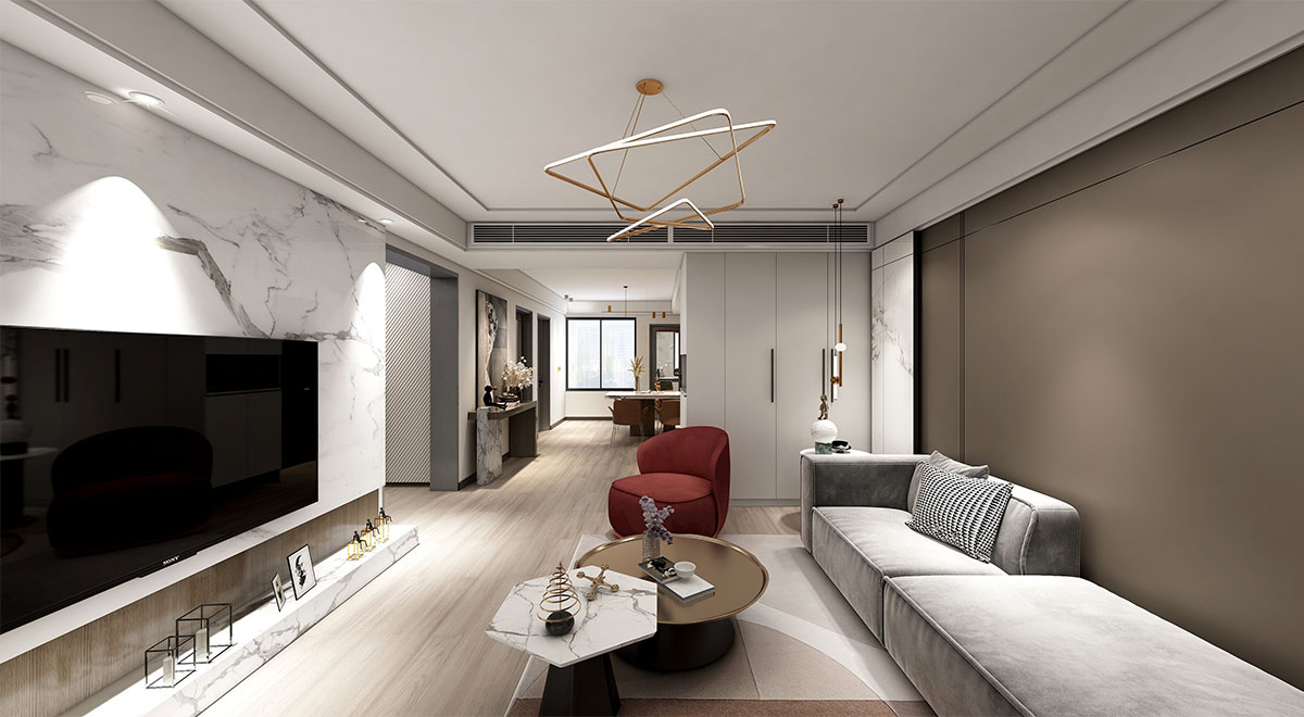 此案例設(shè)計(jì)是四口之家,客戶兒子長(zhǎng)期在國(guó)外生活,希望將生活元素融入進(jìn)去 奶咖色是一種溫柔的色調(diào),有著沉穩(wěn)與優(yōu)雅,如脂似玉,給人一種刻骨銘心的溫潤(rùn)感。 暖灰色屬于大地色系中的一種,時(shí)尚經(jīng)典,能給人自然踏實(shí)的感覺(jué)。 現(xiàn)代木飾面背景系,總是給人樸實(shí)無(wú)華、自然舒適的感覺(jué),帶有寧?kù)o和安穩(wěn)的自然力量。 整屋以奶咖色、暖灰色和木飾面為主,溫馨的色彩和諧交融,點(diǎn)綴些許金色元素,部分空間以白色作為中間色搭配調(diào)和,帶有一絲復(fù)古韻味,整體空間呈現(xiàn)出休閑舒適、溫暖自愈的視覺(jué)效果。
