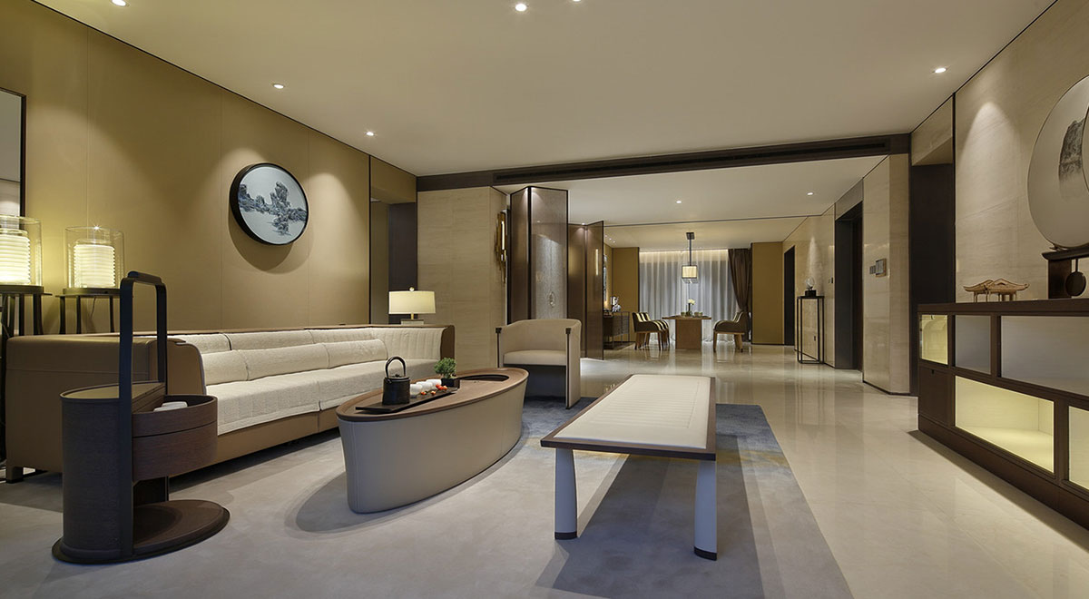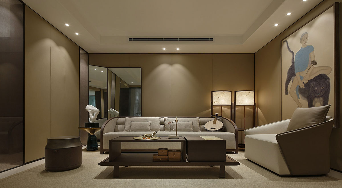 藝術(shù)無國(guó)界的特性造就了我們以東西方元素為起點(diǎn),并回歸東方靈魂的設(shè)計(jì)思路。我們堅(jiān)信最好的設(shè)計(jì)一定是蘊(yùn)含了生活智慧的設(shè)計(jì),缺乏了生活的設(shè)計(jì),就像缺少了靈魂的軀殼。有生活氣 息的氛圍才有活力。何為生活?當(dāng)代東方設(shè)計(jì)美學(xué)不是高高在上的陽春白雪,而是落在每日生活中的直觀體驗(yàn)和感受。 我們所居之所、所用之物、所往之地、無不成為這種美學(xué)的最佳載體。只有生活期間,才能喚醒我們榮譽(yù)血液中的東方基因,在當(dāng)代生活語境中安放歲月靜好...... 布藝的柔軟與石材、木墻板的硬朗搭配,在大面積自然光的潤(rùn)澤下,使的空間的當(dāng)代性與閑適并存。但往往說細(xì)節(jié)決定品位,棉布的沙發(fā),主布以或深或淺有層次區(qū)分的灰色及凹凸質(zhì)感的布藝組合搭配 ,恰到好處的點(diǎn)綴,使室內(nèi)裝置與材質(zhì)構(gòu)建語匯之間,產(chǎn)生一種簡(jiǎn)單、純粹、舒適共鳴的對(duì)話形式,體現(xiàn)品質(zhì)感和空間感。